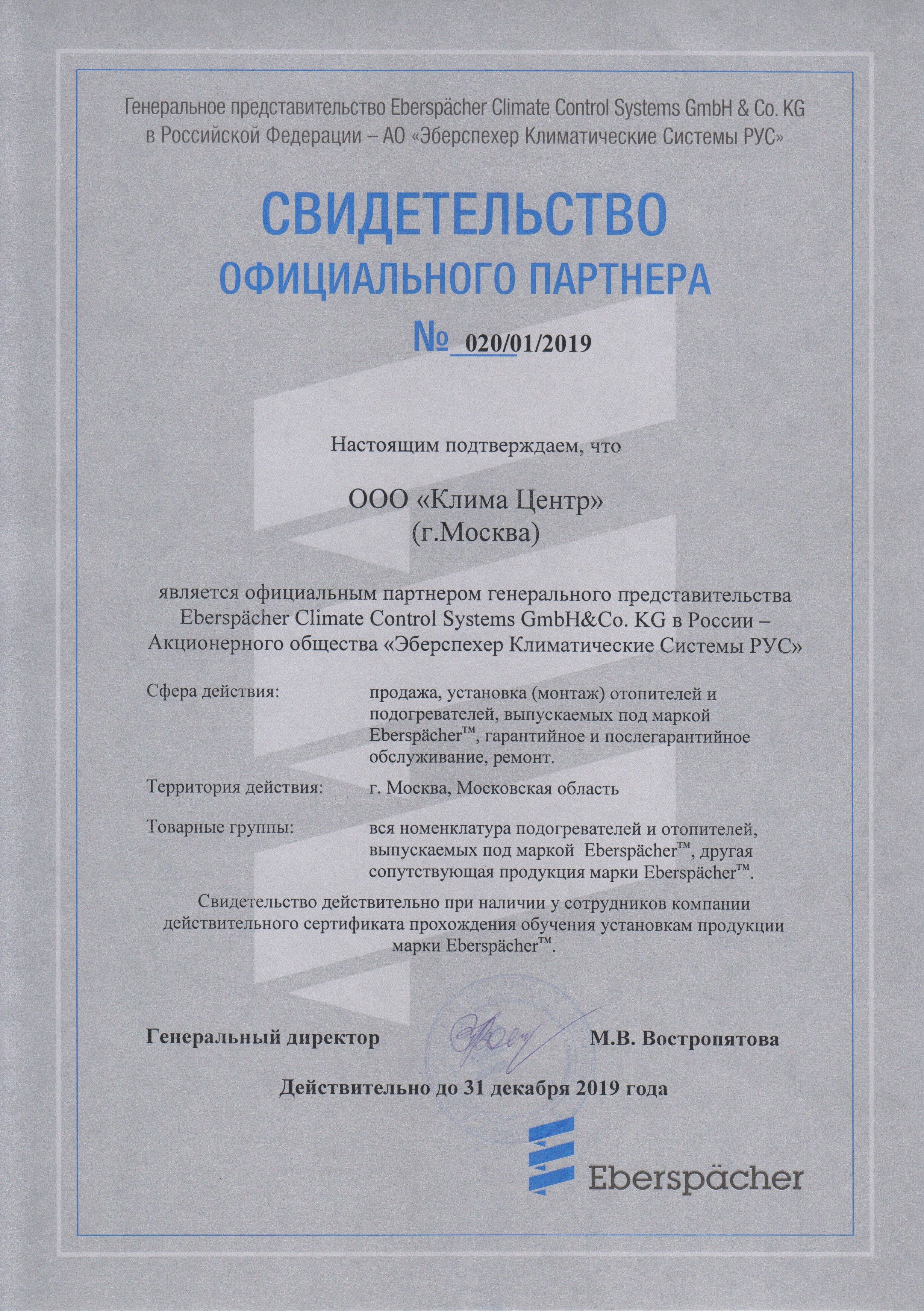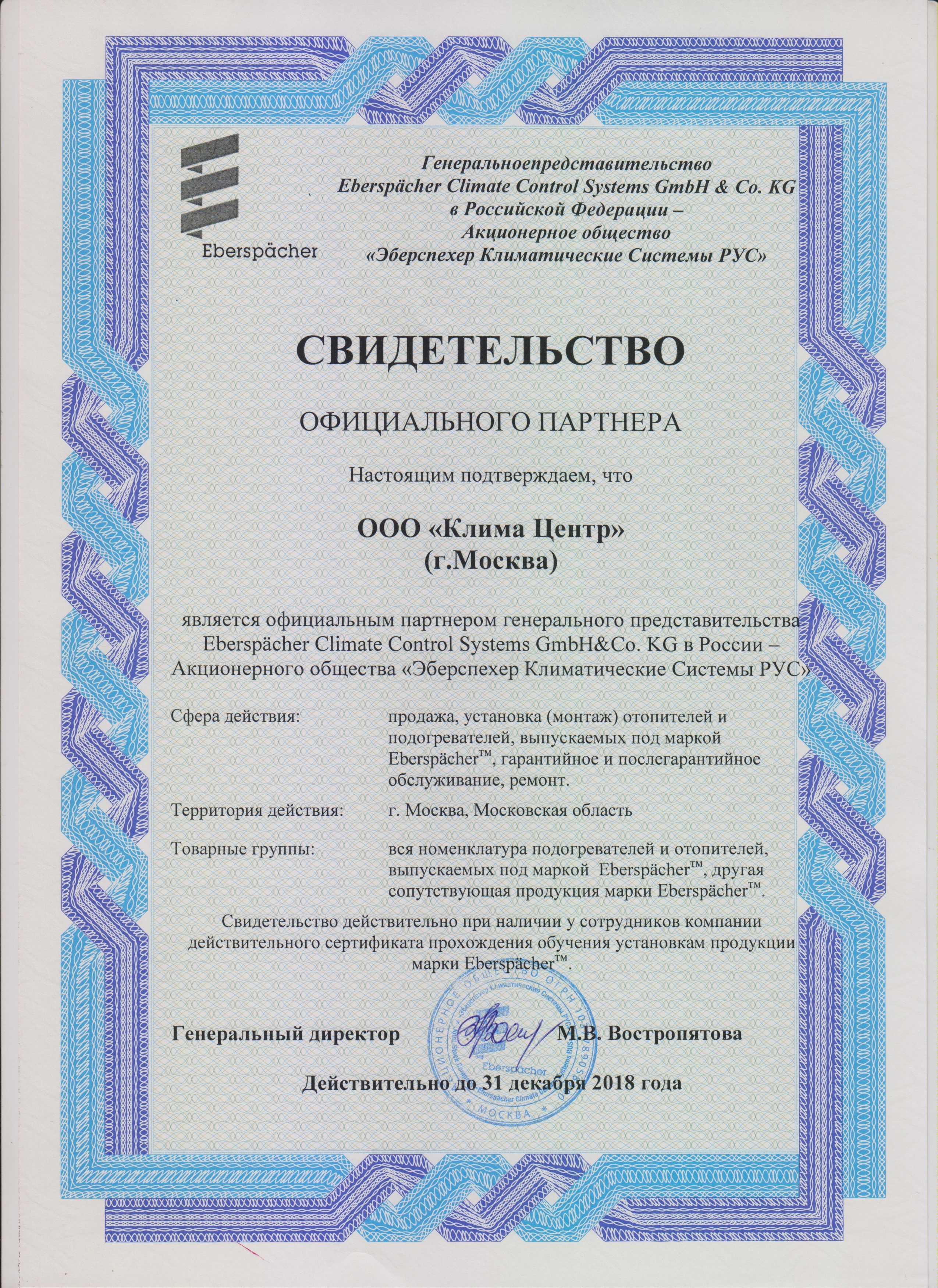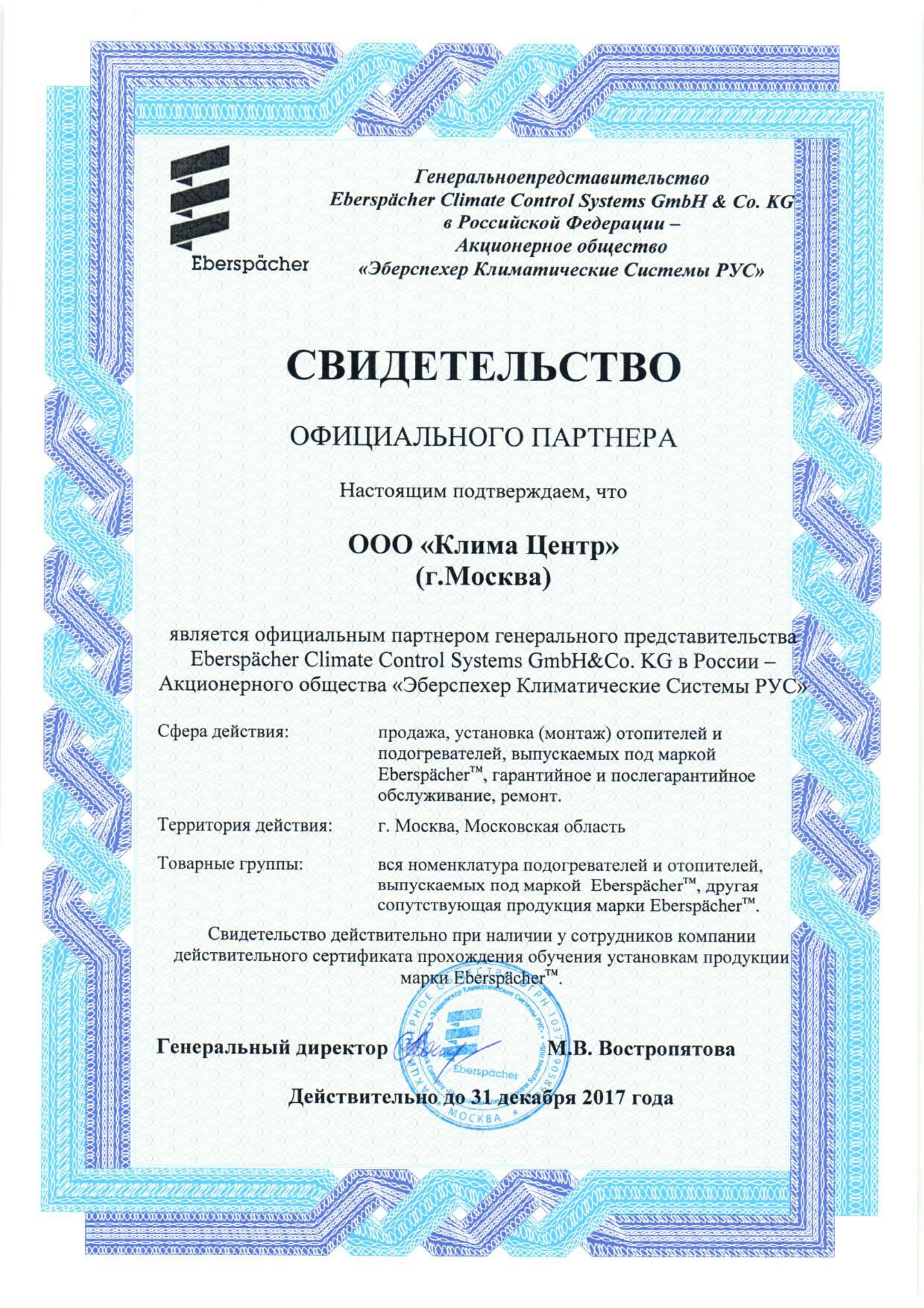 Клима Центр является Московским представительством немецкого концерна “Eberspaecher GmbH&Co. KG”