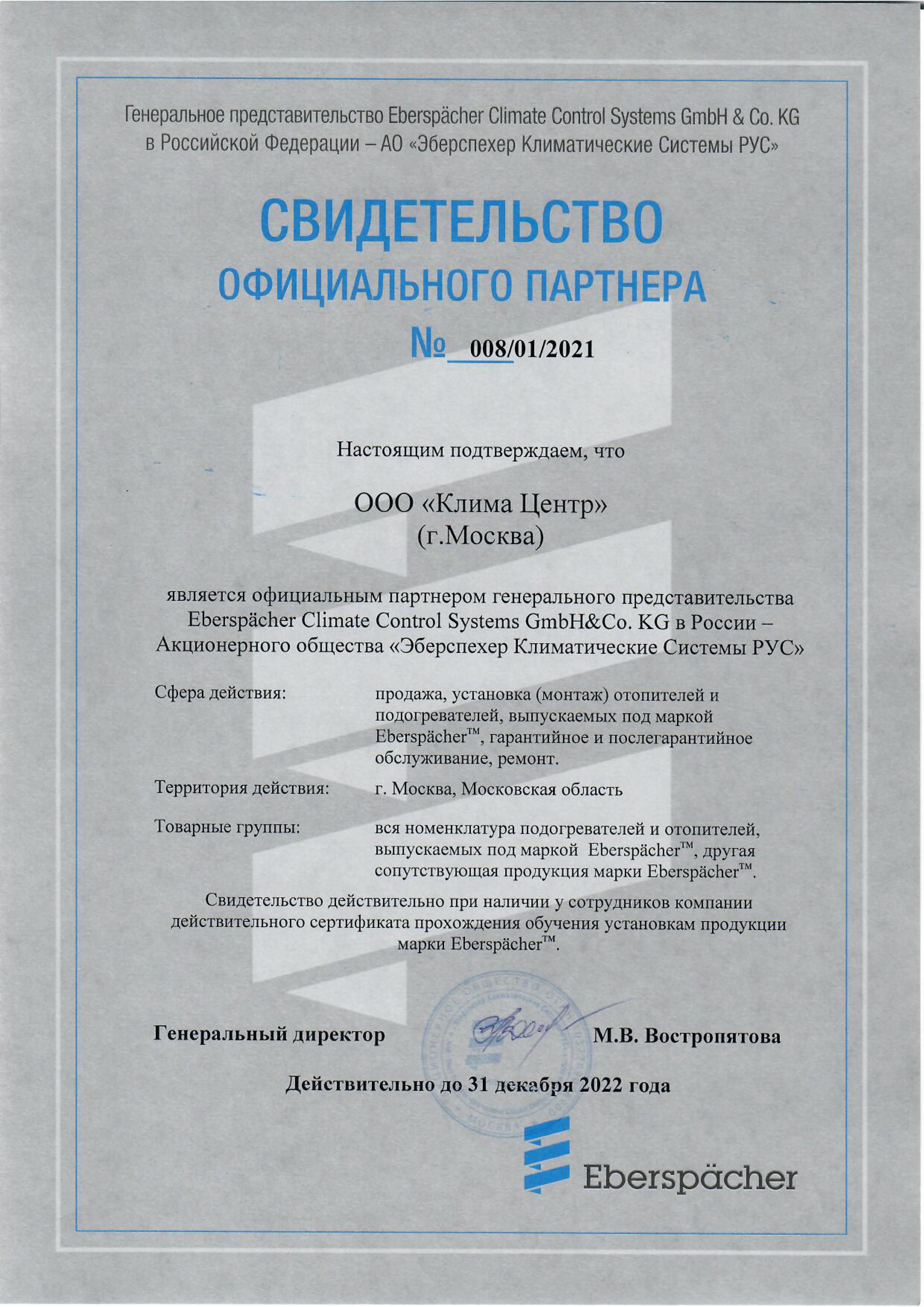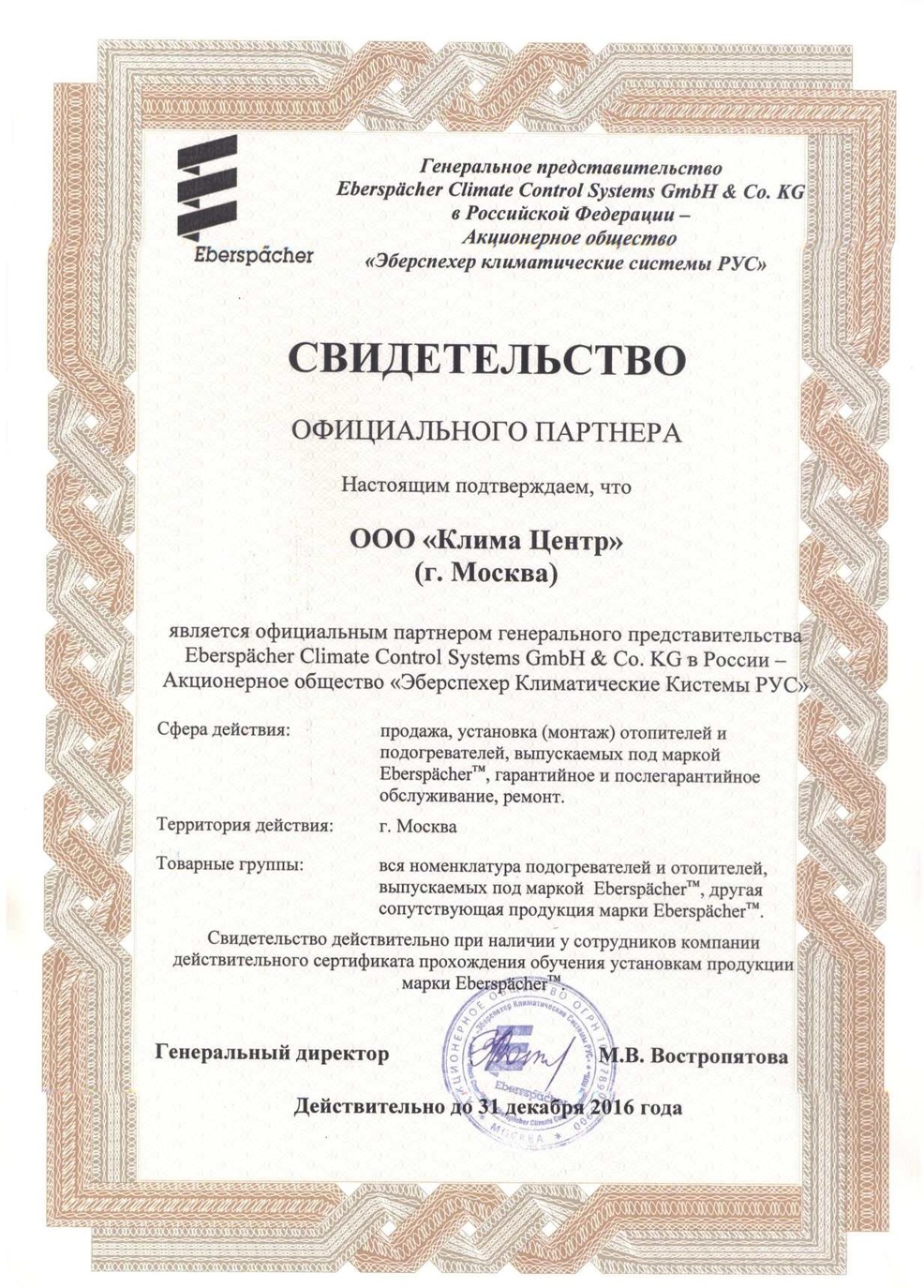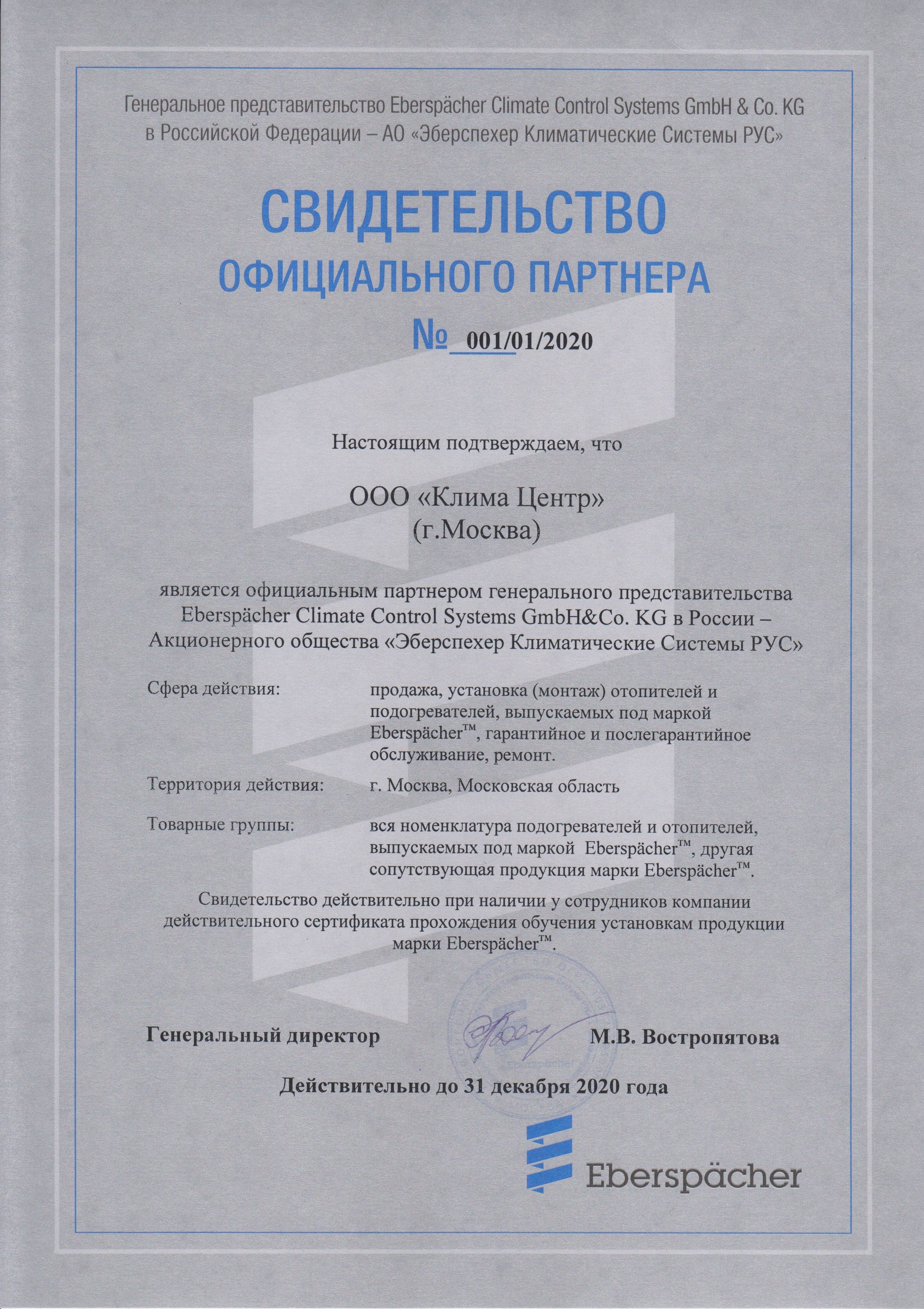 Клима Центр является Московским представительством немецкого концерна “Eberspaecher GmbH&Co. KG”