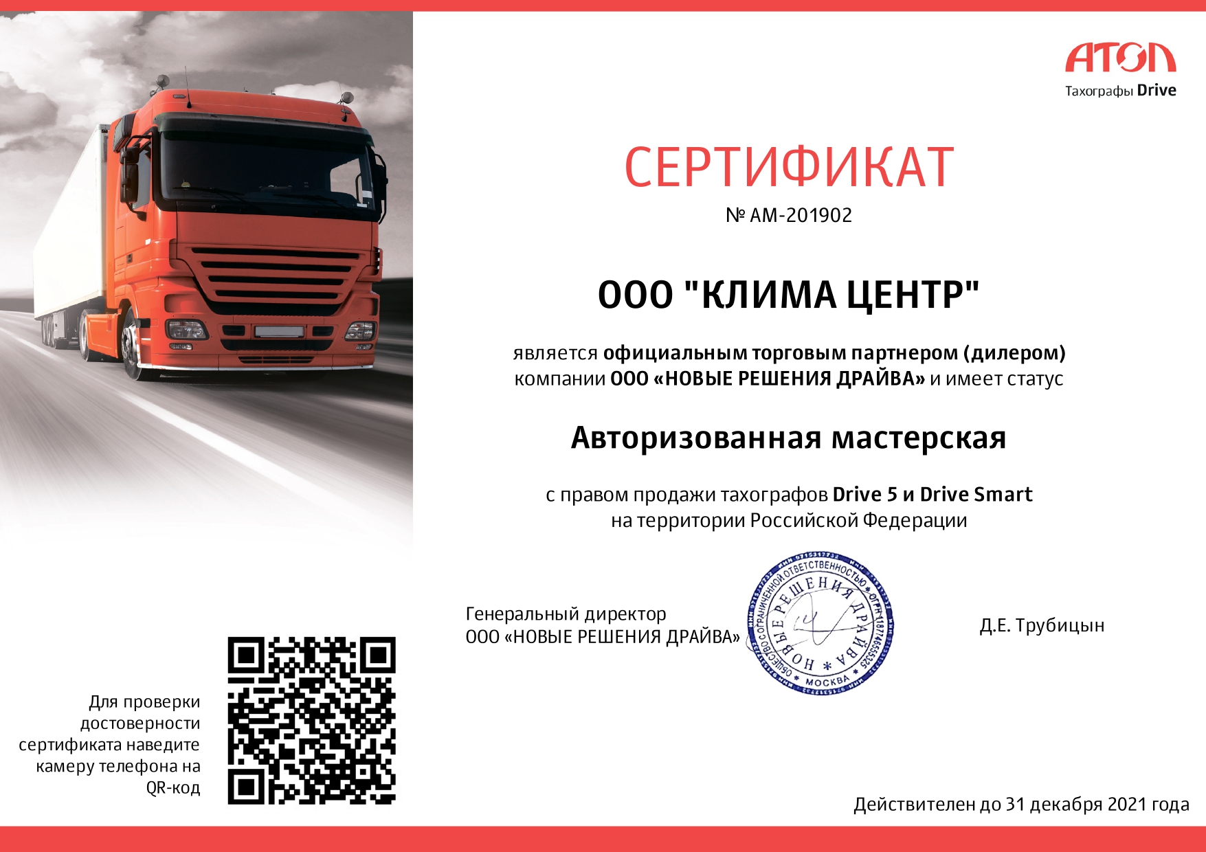 (Эберспехер) и сертифицированным сервисом по обслуживанию тахографов (регистрационный номер свидетельства RUS 852).